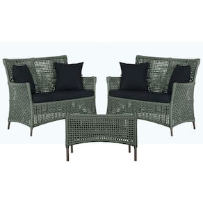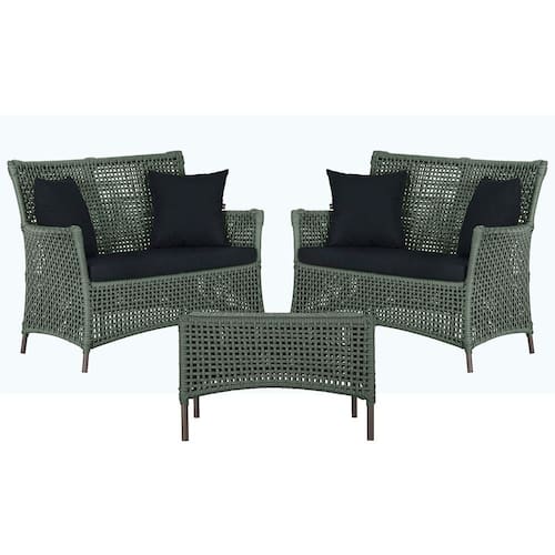 2 Sofá Área e Mesa Igapó Alumínio Pintura Marrom Corda Náutica Estofado Impermeável Almofada 12 Trama - Verde Musgo
