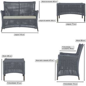 2 Sofá Área e Mesa Igapó Alumínio Pintura Marrom Corda Náutica Estofado Impermeável Almofada 3 Trama - Prata