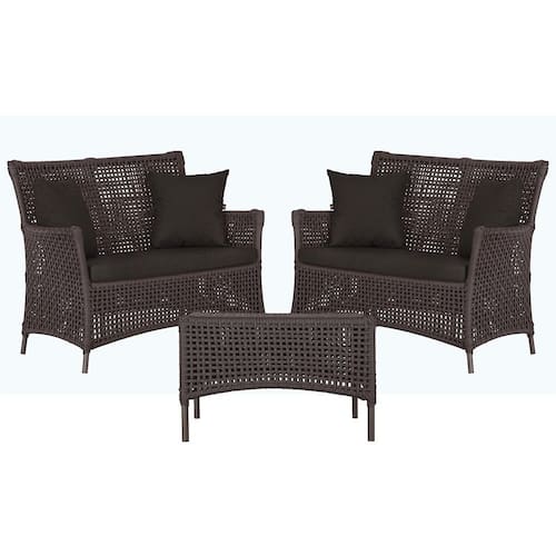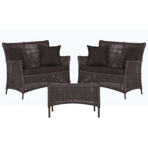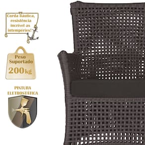 2 Sofá Área e Mesa Igapó Alumínio Pintura Marrom Corda Náutica Estofado Impermeável Almofada 9 Trama