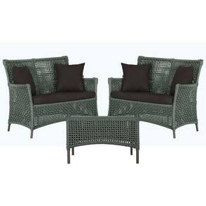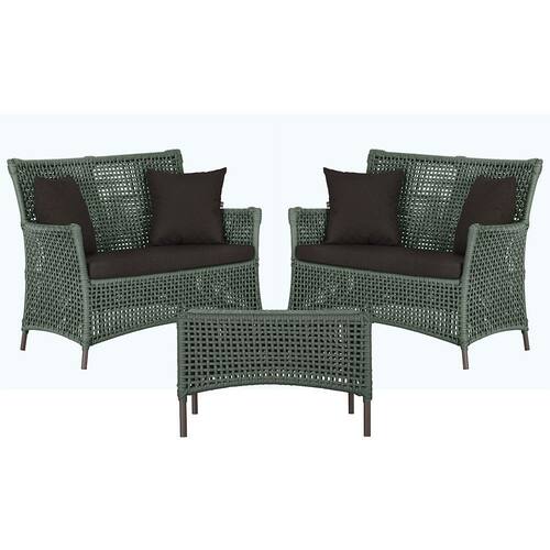 2 Sofá Área e Mesa Igapó Alumínio Pintura Marrom Corda Náutica Estofado Impermeável Almofada 9 Trama - Verde