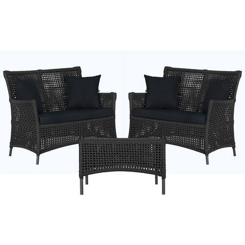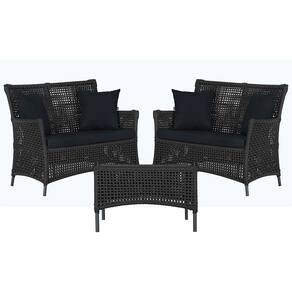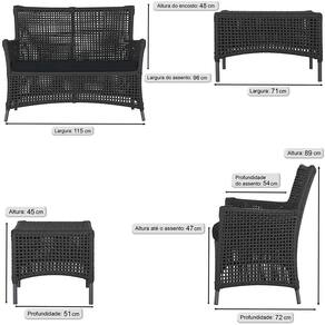 2 Sofá Área e Mesa Igapó Alumínio Pintura Preta Corda Náutica Estofado Impermeável Almofada 12 Trama - Preto