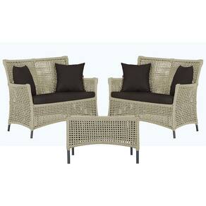2 Sofá Área e Mesa Igapó Alumínio Pintura Preta Corda Náutica Estofado Impermeável Almofada 9 Trama - Bege Claro