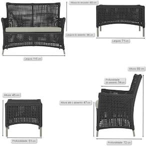 2 Sofás Área e Mesa Igapó Alumínio - Preto