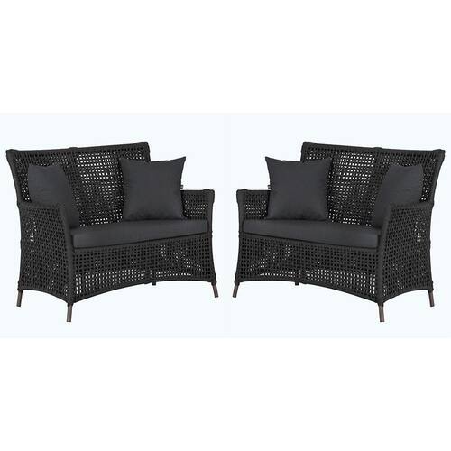 2 Sofás área Externa Igapó Alumínio Marrom Corda Náutica E11 Preto