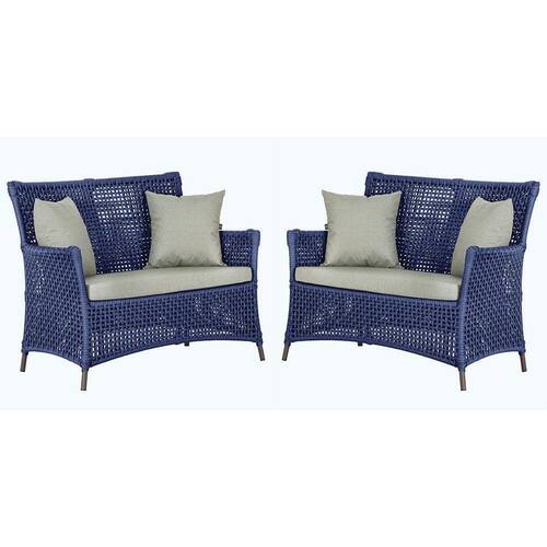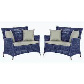 2 Sofás área Externa Igapó Alumínio Marrom Corda Náutica E3 Azul