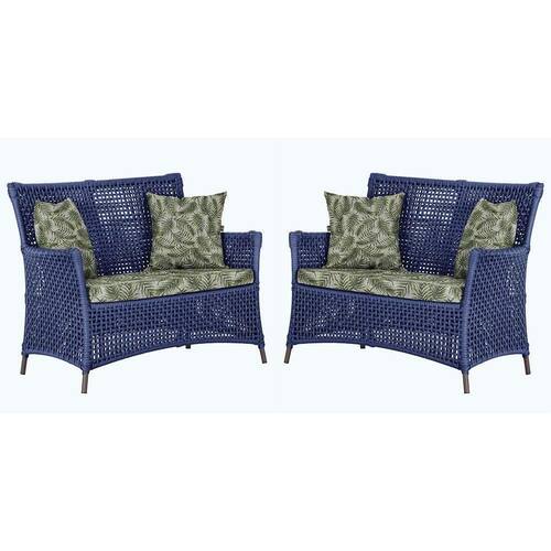 2 Sofás área Externa Igapó Alumínio Marrom Corda Náutica E5 Azul
