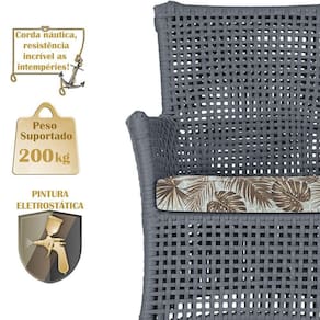 A corda nautica adiciona um toque de rusticidade moderna, enquanto o estofado impermeavel garante que sua Sofa esteja sempre impecavel, mesmo apos uma chuva inesperada ou um acidente com liquidos.