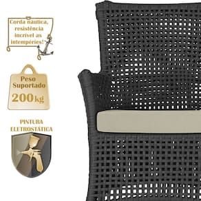 A corda n?utica adiciona um toque de rusticidade moderna, enquanto o estofado imperme?vel garante que sua Sof? esteja sempre impec?vel, mesmo ap?s uma chuva inesperada ou um acidente com l?quidos.