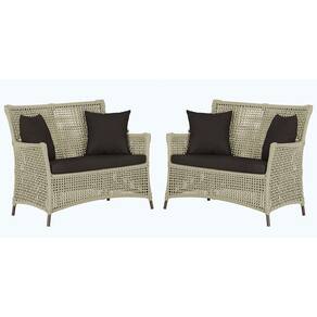2 Sofás Área Externa Igapó Alumínio Pintura Marrom Corda Náutica Estofado Impermeável 9 - Bege Médio