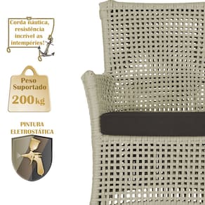 A corda n?utica adiciona um toque de rusticidade moderna, enquanto o estofado imperme?vel garante que sua Sof? esteja sempre impec?vel, mesmo ap?s uma chuva inesperada ou um acidente com l?quidos.