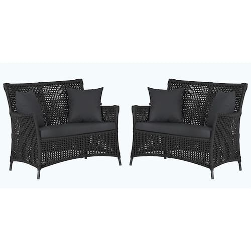 2 Sofás Área Externa Igapó Alumínio Pintura Preta Corda Náutica Estofado Impermeável 11 - Preto