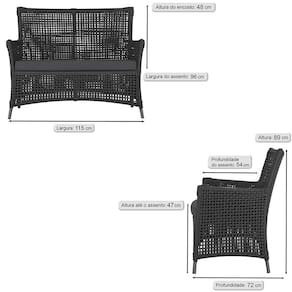 Itens inclusos: 02 Sof?s ?rea Externa Igap? Alum?nio Pintura Preta Corda N?utica Estofado Imperme?vel 11