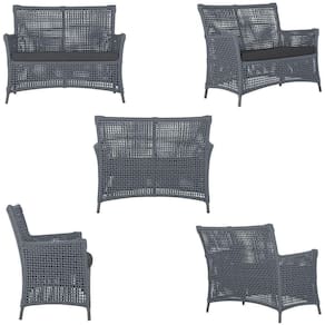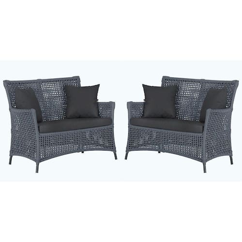 2 Sofás área Externa Igapó Alumínio Preta Corda Náutica E11 Prata