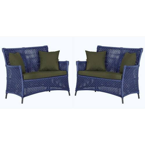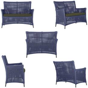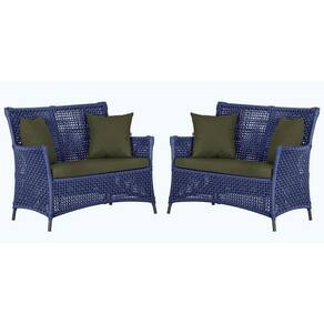 2 Sofás área Externa Igapó Alumínio Preta Corda Náutica E13 Azul - Preto
