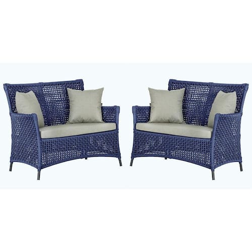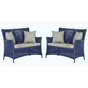2 Sofás área Externa Igapó Alumínio Preta Corda Náutica E3 Azul