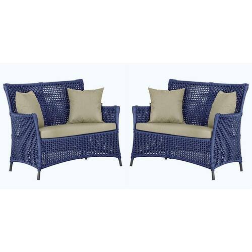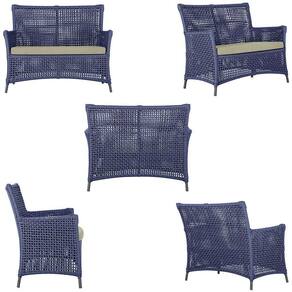 2 Sofás área Externa Igapó Alumínio Preta Corda Náutica E7 Azul