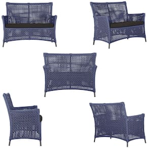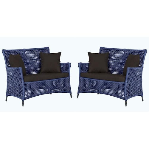 2 Sofás área Externa Igapó Alumínio Preta Corda Náutica E9 Azul