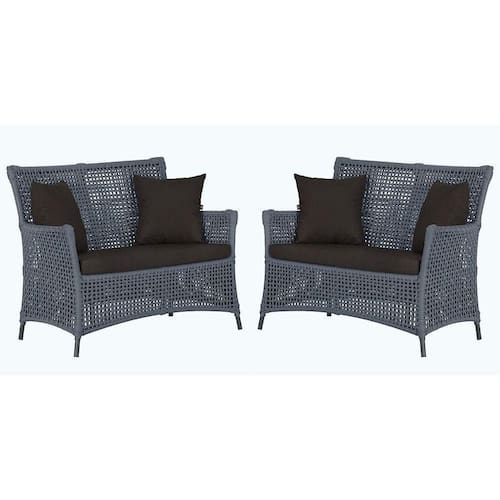 2 Sofás área Externa Igapó Alumínio Preta Corda Náutica E9 Prata