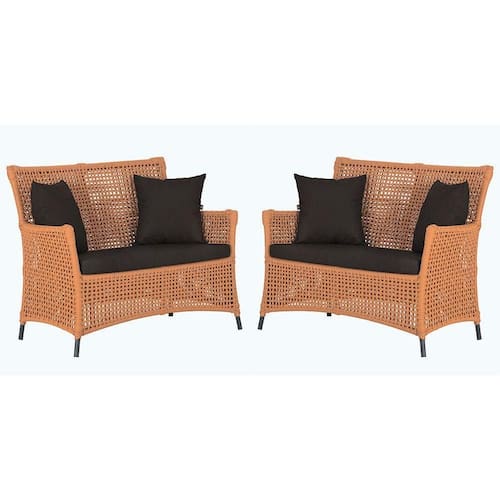 2 Sofás área Externa Igapó Alumínio Preta Corda Náutica E9 Terra Cota