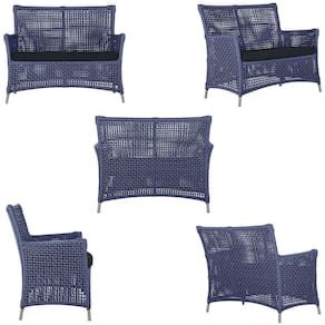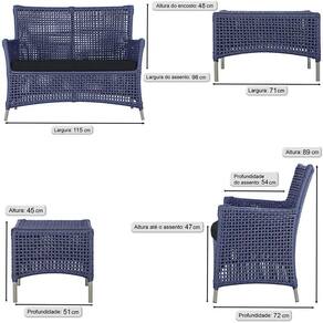 2 Sofás E Mesa Igapó Alumínio Fendi Corda Náutica E12 Trama Azul