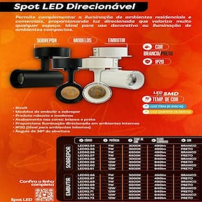 - Direcionamento ajustável para melhor aproveitamento da luz