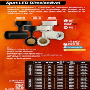A instalação é simples, basta fixar o spot sobre o teto com o suporte de sobrepor. Com o foco ajustável, é possível direcionar a luz para áreas específicas, proporcionando uma iluminação personalizada para seu ambiente. É recomendado que a instalação seja realizada por um profissional qualificado para garantir a correta fixação e funcionamento do produto.