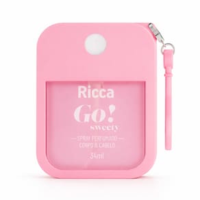 Leve sua fragrância favorita para onde quiser com o Ricca Go! Sweety! Um spray perfumado compacto, ideal para manter corpo e cabelo sempre cheirosos com um toque doce e envolvente.
