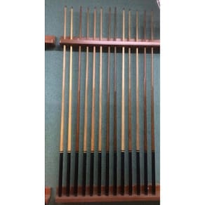 Taco de Sinuca (Bilhar / Snooker) Inteiriço Com Sola 1,45m - 2 Peças Material: Madeira Virola de PVC Sola de Couro Ponteira de +/- 10,5mm Meidida Aprox.: 1,45 m Peso Aprox.: 360g por taco Quantidade: 2 Tacos