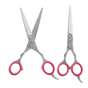 As tesouras possuem cabo com apoio de dedo e amortecedor de impacto de silicone para maior conforto no manuseio e as lâminas possuem parafuso ajustável para determinar a melhor tensão de corte da tesoura.