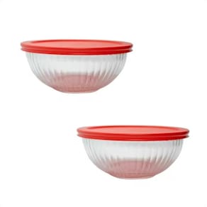 2 tigelas vidro canelada com tampa vermelha 1000ml 2 tigelas vidro borossilicato canelada com tampa vermelha 1000ml