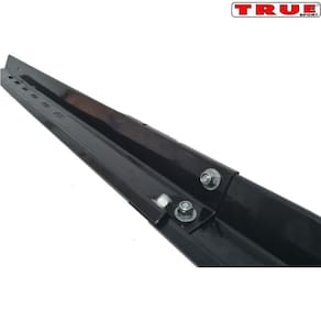 O modelo transbike bipartido TRUE de teto possui uma estrutura leve e bonita, perfilado. É fixado no bagageiro do teto do veículo. Possui encaixe universal tanto para a bicicleta quanto para a fixação do rack no carro. A bicicleta é acoplada na calha pelos pneus/rodas e por um braço utilizado para prender no quadro da bicicleta. Cada suporte pode carregar uma bicicleta, mas o bagageiro do veículo pode suportar até 3 suportes, cada um carregando uma bicicleta.