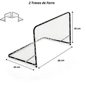 Esta mini trave ela dobra para guardar , o que facilita o transporte e armazenamento. É feito de aço, garantindo durabilidade e resistência, mesmo com o uso frequente.