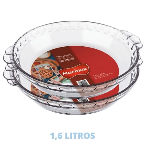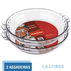 Itens inclusos: 2 Assadeira de vidro Filetada 1,6Litros Marinex com as respectivas descrições acima.