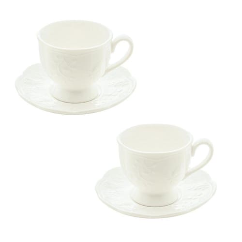 - kit 2 Xícaras com Pires - Produzidas em Porcelana de Alta Qualidade - Detalhes em Relevo - Capacidade: 100ml Ean: 7899766710185