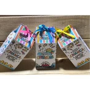 Bem-vindo à Kibunitinho Descubra o segredo de uma festa inesquecível Destaques do Kit: Pronto em Segundos: Caixinha no formato Milk se encaixa perfeitamente sem precisar de cola. Sua montagem Um jogo de criança Medidas Ideais: Com 14x6,5x6,5 cm e área útil de 8x6,5x6,5cm , é o tamanho perfeito para agradar a todos os convidados. Variedade de Cores: As fitas harmonizam com o tema, mesmo que as cores possam variar um pouquinho devido à configuração do monitor. Qualidade é a nossa prioridade: Fabricados em papel off set 240g fosco, garantimos que cada item chegue perfeitamente até você. Vão desmontados para que tudo chegue em perfeito estado, sem amassados. E caso surja qualquer dúvida, estamos aqui, prontos para ajudar Por que parar por aqui Explore nossa loja Temos uma variedade encantadora esperando por você. E, para temas específicos, é só pedir o link. Será um prazer te atender Marca: Kibunitinho