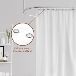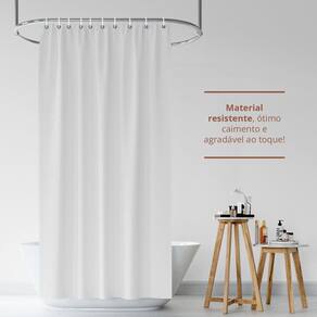 Por ter uma transparência fosca ela bloqueia a visão, porém permite a entrada de luz mantendo o ambiente claro. Seu material é flexível e macio, agradável ao toque e com caimento perfeito. Além disso, evita que água se espalhe por todo o ambiente durante o banho.