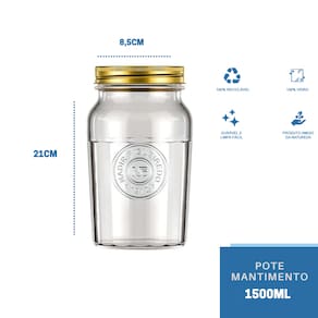 Pote Americano Mantimento Vidro Vintage 1500ml Nadir 20 unidades