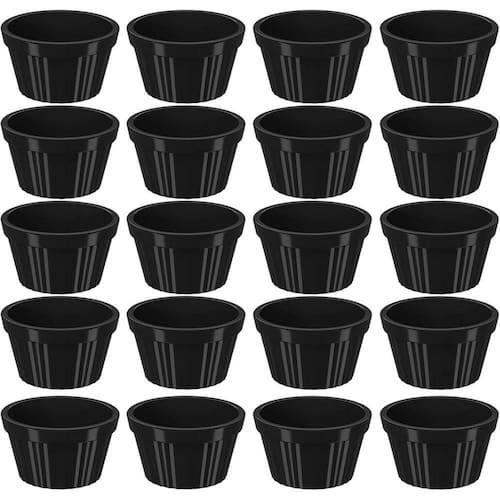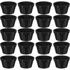 20 Ramequim Plástico 7,3cm Preto Canelado 90ml cada Molheira Pequena Uno Coza.