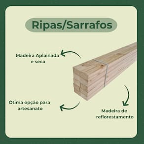 Conteudo do kit: 20 ripas sarrafos de Pinus seco e aplainado