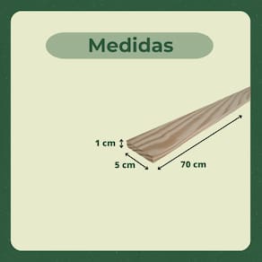 Medidas aproximadas de cada ripa/sarrafo: 1 x 5 X 70 cm (A x L x C)