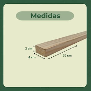 Medidas aproximadas de cada ripa/sarrafo: 2 x 4 X 70 cm (A x L x C)