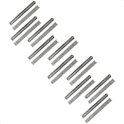 a corrediça telescópica é indicada para gavetas de cozinhas, closets, quartos, banheiros, lavanderias, prateleiras retráteis/extensíveis, bases de teclado e mobiliário em geral. - marca: rayco; - kit com 10 pares de corrediças; - comprimento: 450mm 18 polegadas ; - largura: 30mm; - espessura: 10mm; - para uso geral; - possibilita a abertura total da gaveta com deslizamento suave, preciso e resistente; - corpo em aço galvanizado; - deslizamento através de de aço; - tipo: telescópica; - o par suporta até 20kg; - peso: 0,29kg; - garantia: 90 dias.