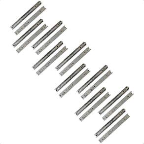 Corrediças Telescópicas 40cm Gaveta Trilho Zincada 10 Pares Rayco A Corrediça telescópica é indicada para gavetas de cozinhas, closets, quartos, banheiros, lavanderias, prateleiras retráteis/extensíveis, bases de teclado e mobiliário em geral - Marca: Rayco - Kit com 10 pares de corrediças - Comprimento: 400mm 16 Polegadas - Largura: 30mm - Espessura: 10mm - Para uso geral - Possibilita a abertura total da gaveta com deslizamento suave, preciso e resistente - Corpo em aço galvanizado - Deslizamento através de de aço - Tipo: telescópica - O par suporta até 20kg - Peso: 0,29Kg - : 90 dias
