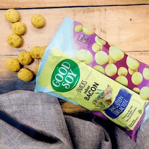 O Snack de Soja GOODSOY Sabor Bacon é a opção perfeita para quem busca um petisco crocante e saboroso, sem abrir mão da qualidade nutricional. Feito com proteína de soja e temperado com um irresistível sabor de bacon, é ideal para qualquer hora do dia.