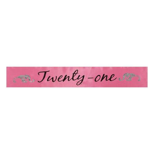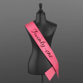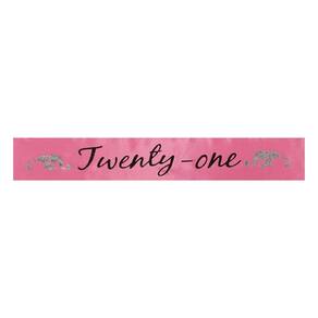 - 441530 Características: - Material de fita de cetim rosa choque ou vermelho e letras impressas em tela preta ou brilhante. - Costuras costuradas diagonalmente. - Acessório perfeito para seu aniversário de 21 anos. Gênero: feminino.