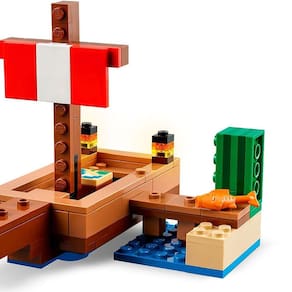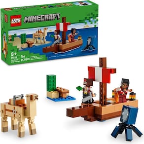 LEGO Minecraft 21259 - A Viagem do Barco Pirata é um conjunto de aventura com figuras de piratas que pode ser jogado como um brinquedo sozinho ou combinado com outros conjuntos (vendidos separadamente) para criar uma experiência de jogo ainda maior. Suba a bordo do barco com 2 piratas LEGO Minecraft e zarpe rumo a grandes aventuras no bioma Deserto. Algo espreita na água, o que será Um calamar!