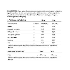 226ERS Hydra Jelly Vegano Kit 10 Unids 40g Cola Sabor: Cola O Hydrajelly é um gel energético com textura de gelatina que facilita o consumo de seus componentes. Cada unidade oferece 22,6 g de hidratos de carbono e 91 kcal; sendo adequado para veganos. Hydrajelly ostenta a marca Cologne List, que é a primeira e maior plataforma de prevenção de dopagem para suplementos alimentares em todo o mundo. A Cologne List inclui apenas produtos que foram sujeitos a rigorosos testes para apurar, mediante análises e a verificação dos rótulos. Ingredientes: Água, açúcar, frutose, glucose, concentrado de sumo de pera, sal, pectina e pectina amidada, cafeína, aroma, conservantes: ácido ascórbico e sorbato de potássio, regulador de acidez: ácido cítrico. Contém cafeína. Não recomendado para crianças e mulheres grávidas 100mg/40g . Sugestão de uso: Tomar de 1 a 4 unidades por hora com água, dependendo das necessidades de cada utilizador. Advertências: Os suplementos alimentares não devem ser como substitutos de uma dieta variada e equilibrada. Não exceda a dose diária expressamente recomendada. Mantenha fora do alcance das crianças.