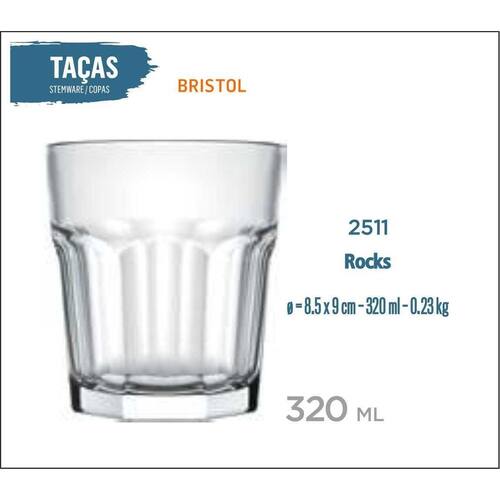 Copo Bristol 320ml - Whisky, Drink, Água, Refrigerante, Multiuso, Casual, Vodka, Pinga, Cachaça, Destilado, Tequila, Batida, Sobremesa