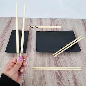 Este kit de hashi para restaurante destinado a comida japonesa, como sushi e sashimi, é composto por 24 pares de palitos de bambu, sendo que cada um mede 24 centímetros de comprimento. A quantidade de 24 pares sugere a capacidade de servir diversas mesas simultaneamente, tornando-o conveniente para restaurantes movimentados. O bambu é um material comum para hashis devido à sua leveza, durabilidade e apelo estético. Os hashis são higiênicos para ter na cozinha, antibacterianos naturais e não absorvem umidade. A inclusão de 24 pares também pode ser conveniente para eventos, catering ou situações em que há uma necessidade de servir um grande número de pessoas. A estampa geométrica adiciona um toque moderno e elegante aos hashis, tornando-os não apenas utensílios funcionais, mas também itens de destaque na apresentação da mesa.