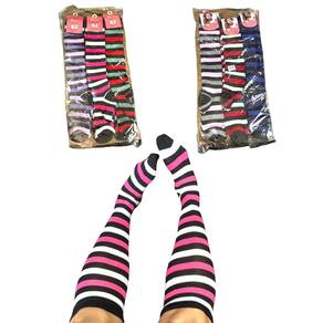 24 Pares Meias Longas Coloridas Listradas Até O Joelho - Sortido - Único